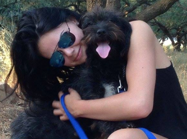 She didn’t have time to notice this before but once in the safety of her friends, she saw that the dog had followed her home. This is when she took the time to pet the dog and give her thanks: