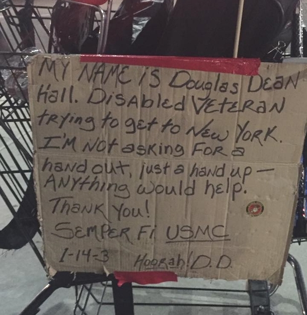 Douglas told Dana that he had friends in New York, and that he really misses the city. Dana wanted to help grant this man’s wish, so she secretly setup a GoFundMe account for the former Marine.
