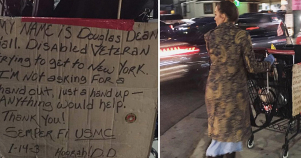 Douglas told Dana that he had friends in New York, and that he really misses the city. Dana wanted to help grant this man’s wish, so she secretly setup a GoFundMe account for the former Marine.