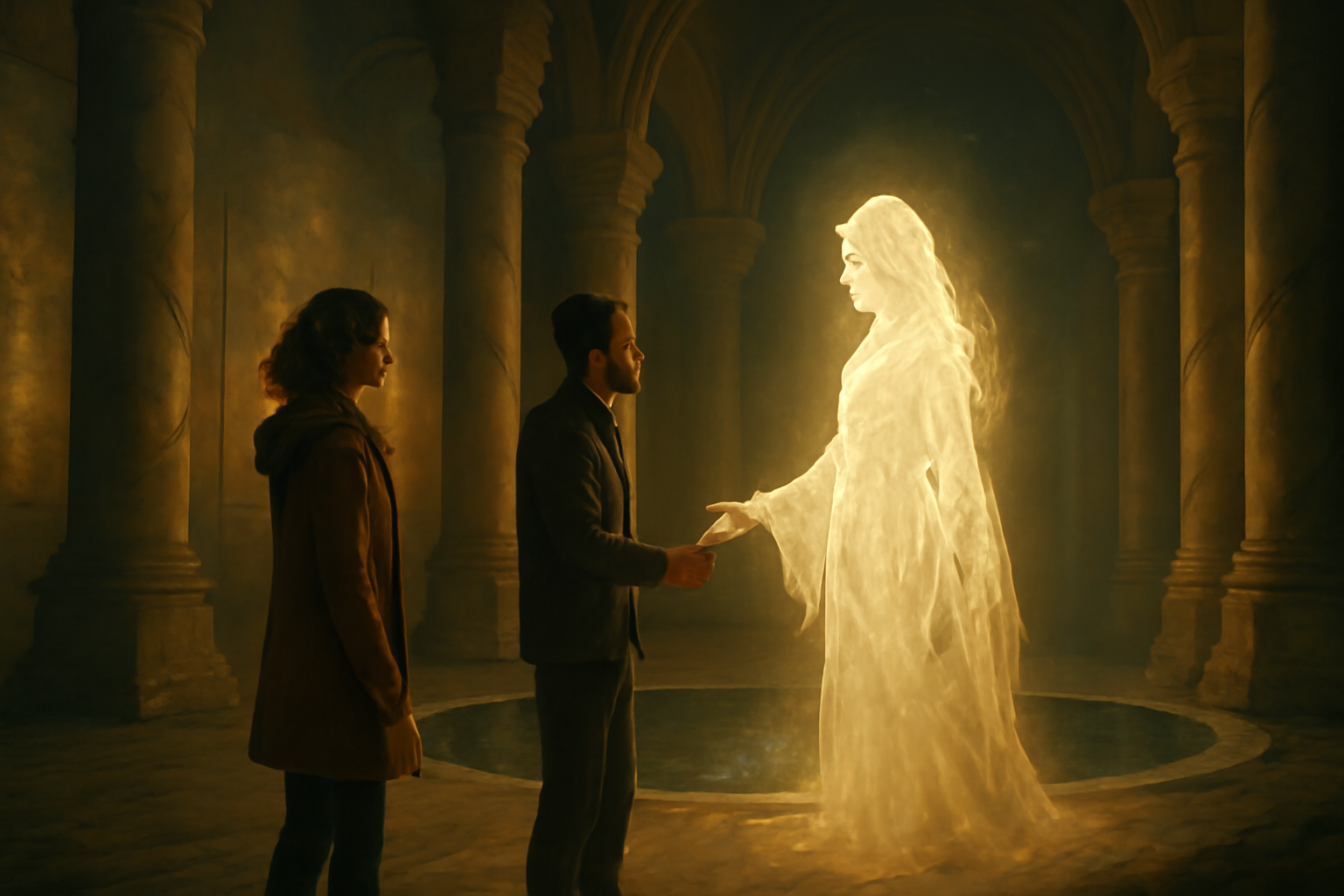 At the chamber’s center, a pool of still water lay like a mirror, reflecting the golden ceiling.